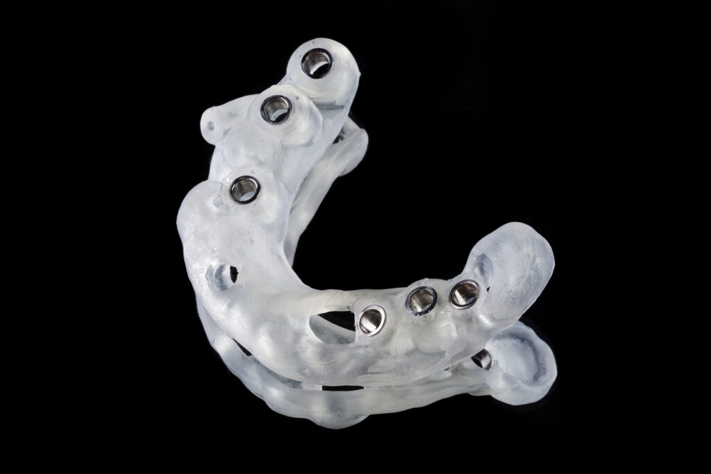 一般的に、サージカルガイドは半透明のマウスピースのような形をしています。